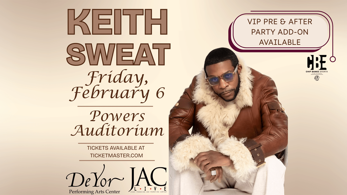 JAC LIVE and the DeYor Performing Arts Center are thrilled to welcome Keith Sweat on Friday, February 6th inside Powers
